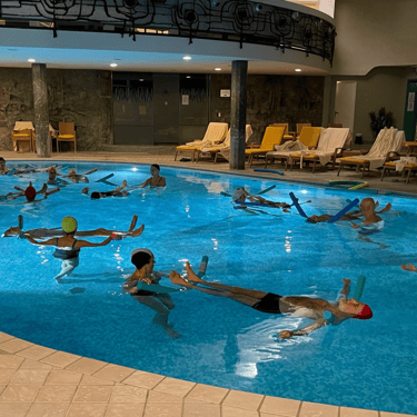 Una serata di pratica nelle acque termali della piscina